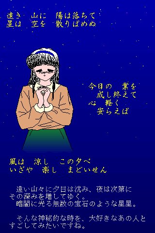 ここでは、恥ずかしながら私が最近(でもない)描いた下手くそCG集を、作品に関する雑談と共に発表いたします。テキトーにみてやってください。なお、一々記していませんが、すべてフォーマット変換にPaint Shop Pro4.1を使用しています。